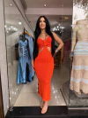 Vestido longo de modelagem ampla em malha fluit estampada, com alças delicadas e recorte frontal na cintura que cria um efeito moderno e alongado. O aviamento metálico adiciona um toque de sofisticação, elevando a peça com charme contemporâneo.